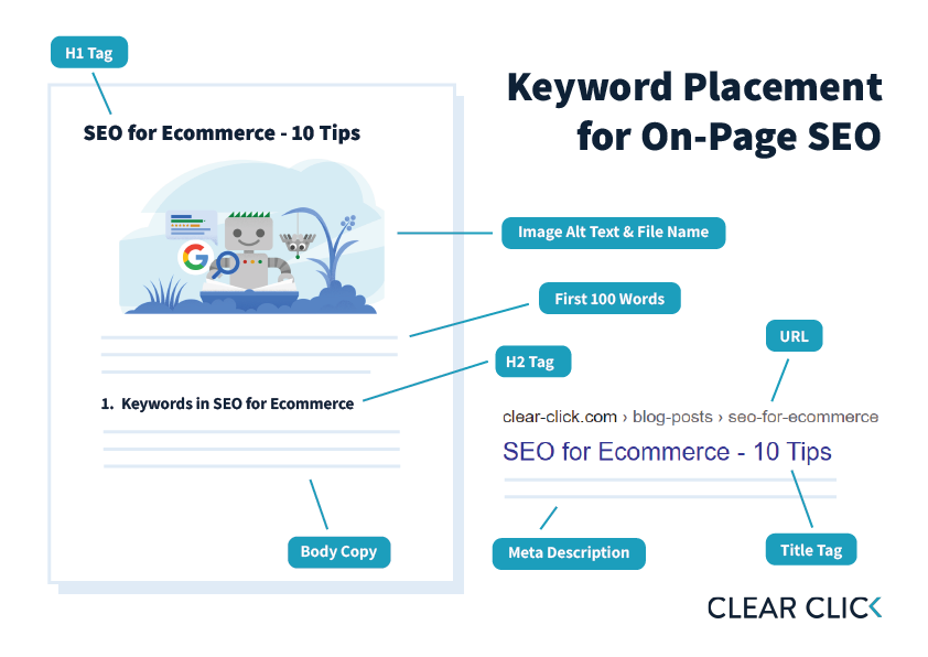 As the name suggests, on-page SEO for ecommerce websites means optimising various elements of your website to add more value for the customer - which in turn helps you to rank higher in search results. This includes, among other things, keyword optimisation, improving your website’s load time, and simplifying your website architecture.
